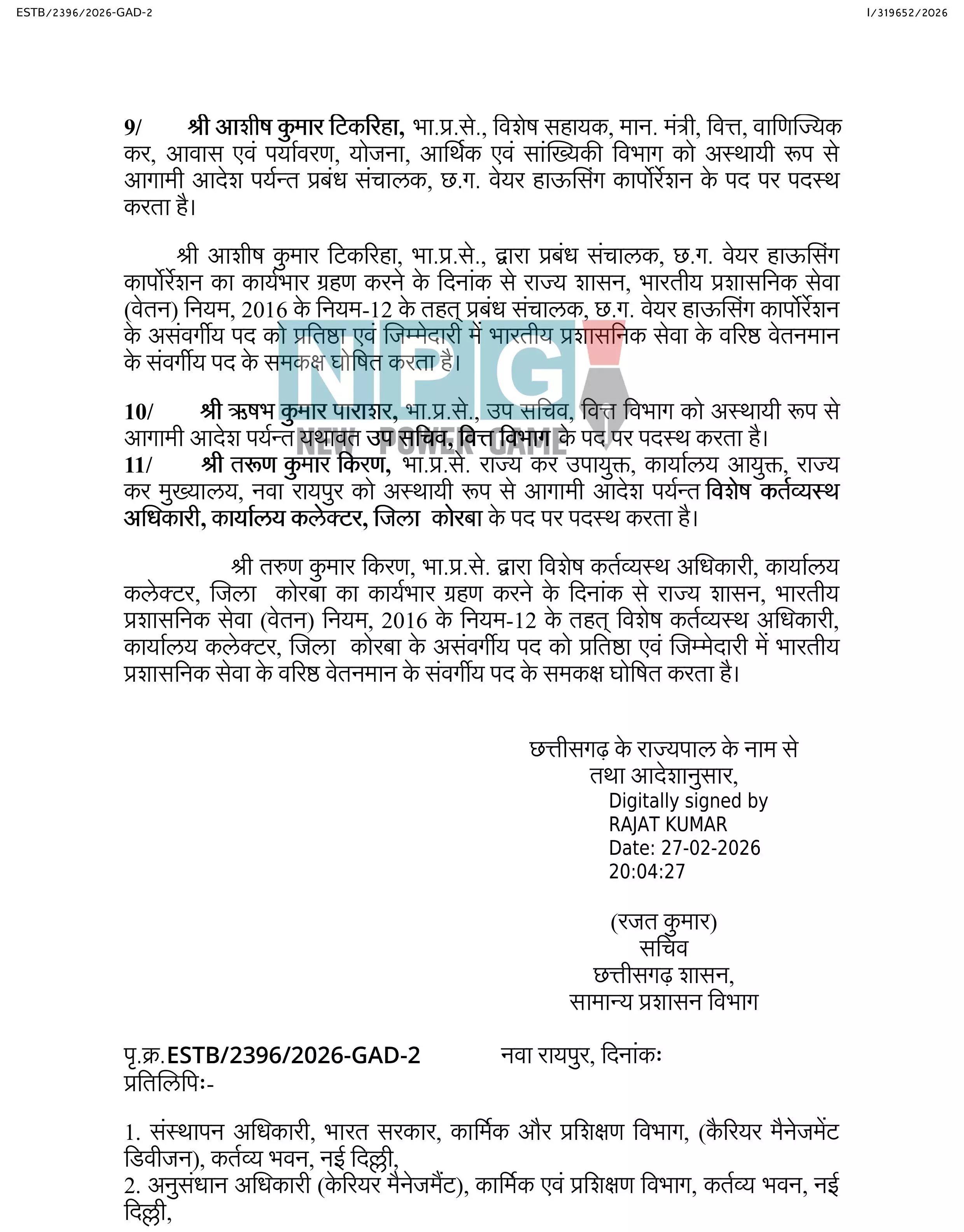 CG IAS Transfer: IAS ट्रांसफर: छत्तीसगढ़ में कलेक्टर समेत 11 आईएएस अधिकारियों के तबादले, देखिए आदेश